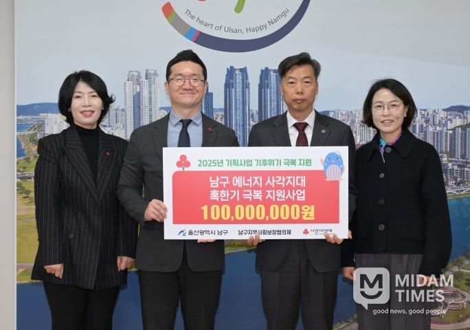 미담타임스 김준완 기자 | 울산사회복지공동모금회(회장 전영도) 27일 울산 남구(구청장 서동욱)에 2025년 혹한기 극복 지원사업 후원금 1억 원을 전달했다.