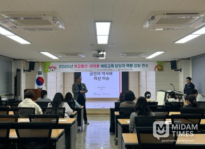 미담타임스 김준완 기자 | 경상북도영양교육지원청은 2025년 11월 27일 대회의실에서 관내 초·중·고등학교 흡연·마약류 예방사업 담당자를 대상으로 ‘학교 흡연·마약류 예방교육 담당자 역량 강화 연수’를 실시했다.