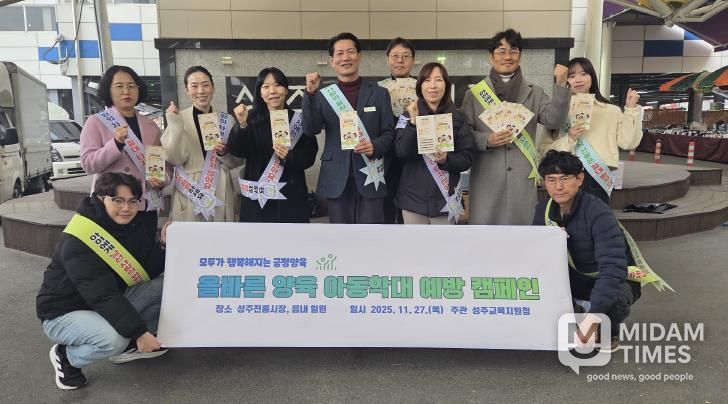 미담타임스 김준완 기자 | 경상북도성주교육지원청은 11월 27일 목요일 성주전통시장 및 인근 관공서·상가 밀집 지역에서 읍민을 대상으로 긍정양육 문화 확산을 위한 ‘아동학대 예방 거리 캠페인’을 실시했다.