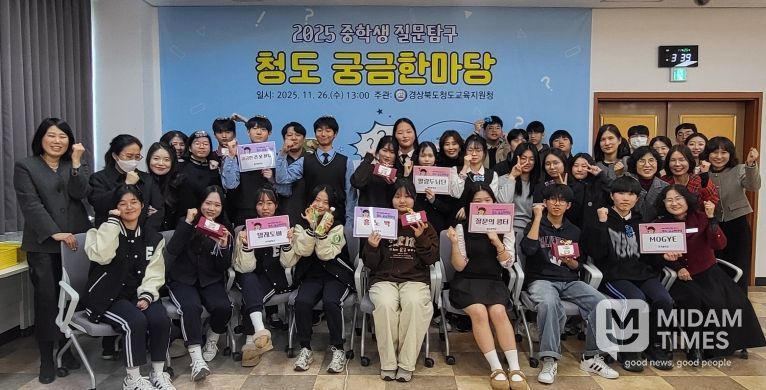미담타임스 김준완 기자 | 청도교육지원청 오홍현 교육장은 지난 11월 26일 청도교육지원청 3층 대회의실에서 ‘제 1회 청도 중학생 질문·탐구 궁금한마당’ 지역 예선을 개최했다. 이번 대회에는 관내 모든 중학교가 참여해, 3학년 학생 3~4명과 지도교사 1명이 한 팀을 이룬 총 6개 팀이 사제동행 형태로 참가했다.