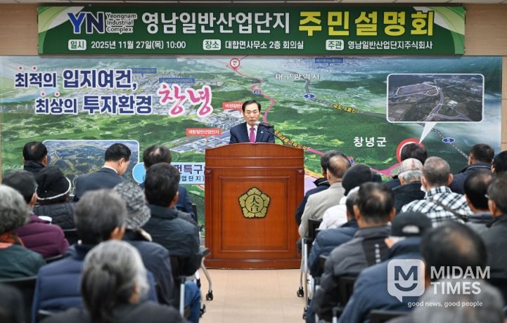 미담타임스 김교환 기자 | 창녕군은 27일 영남일반산업단지 조성사업 주민설명회를 개최하고 보상계획과 향후 추진 일정을 주민들에게 공식적으로 공유하며, 수년간 표류해 온 사업이 본궤도에 진입했음을 밝혔다. 이번 설명회는 민선 8기 출범 이후 군이 최우선 핵심과제로 추진해 온 산업단지 재가동의 실질적인 첫걸음으로 평가된다.