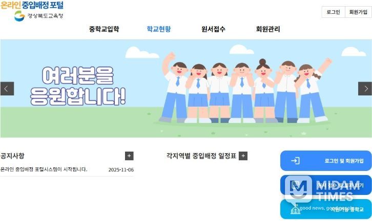 미담타임스 김준완 기자 | 경북교육청은 12월 1일부터 2026학년도 중학교 입학 배정을 위한 원서 접수를 전국 최초로 온라인 시스템을 통해 시행한다고 밝혔다.