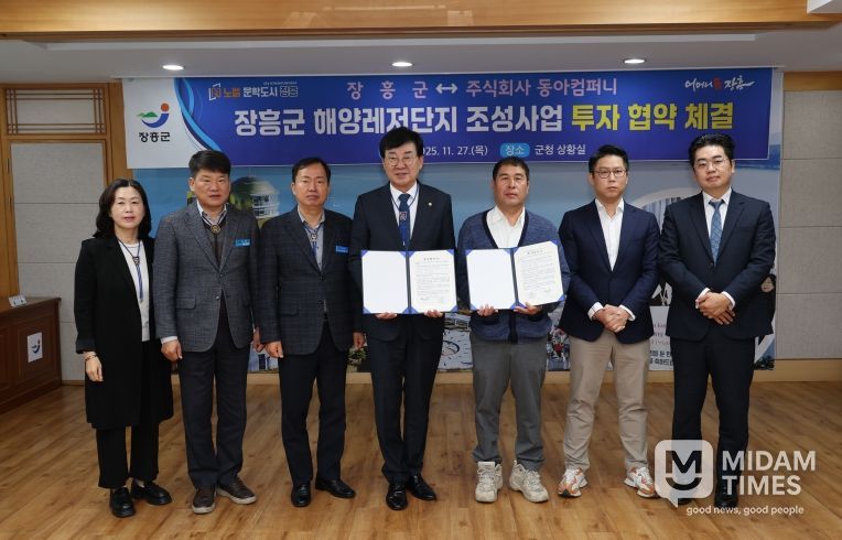 미담타임스 정인화 기자 | 장흥군은 27일 (주)동아컴퍼니와 150억원 규모의 해양레저단지 조성사업 투자협약을 체결하고, 지역 해양관광산업의 새로운 도약 기반을 마련했다.