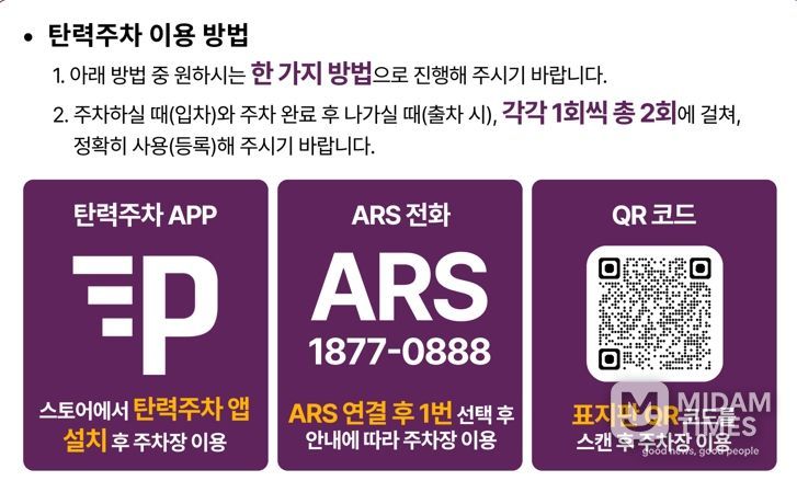 서비스를 이용하려면, 먼저 ‘탄력주차’ 앱을 설치하고 회원가입 후 ‘입차하기’ 버튼을 눌러 주차를 시작한다. 출차 시에는 ‘출차하기’ 버튼을 누르면 사전에 등록한 카드로 자동 결제가 이뤄진다.