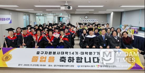 미담타임스 김교환 기자 | 대구 중구는 지난 27일 중구 자원봉사센터에서 ‘2025년도 중구자원봉사대학(14기)·대학원(7기) 졸업식’을 개최했다.