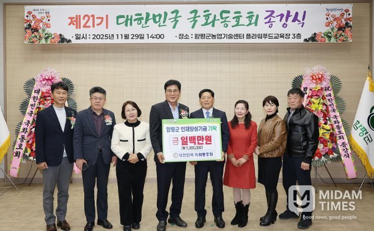 또한, 국화동호회는 종강식과 함께 지역 인재 육성을 위해 함평군 인재양성기금에 100만 원을 기탁하며 나눔의 의미도 더했다.