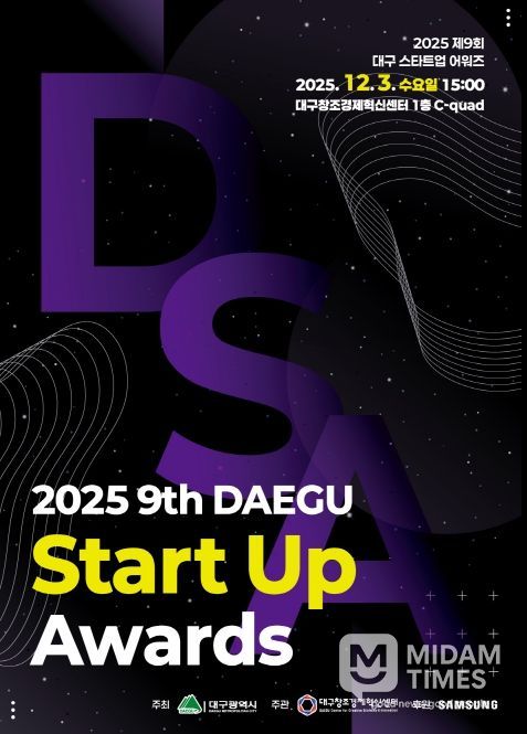 미담타임스 김교환 기자 | 대구광역시는 12월 3일 오후 3시, 대구창조경제혁신센터 C-quad(1층)에서 ‘제9회 대구스타트업어워즈’를 개최하고, 지역 창업생태계를 빛낸 우수 스타트업 10개사와 창업지원 유공자 2명을 시상한다.
