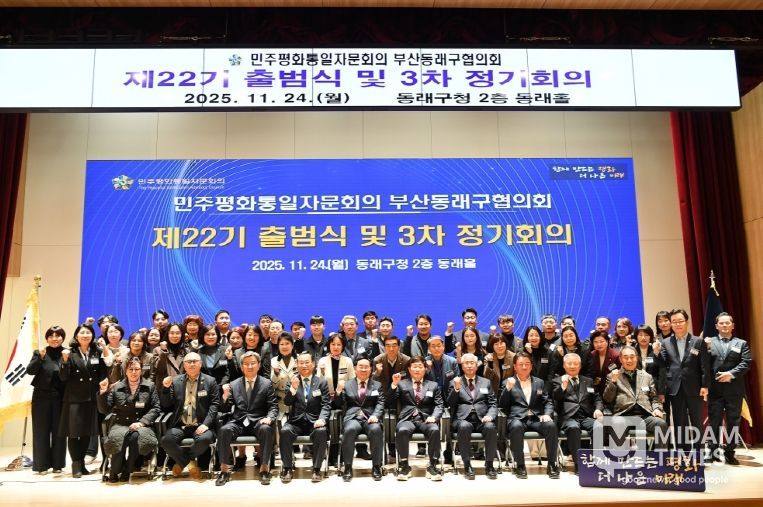 미담타임스 김교환 기자 | 부산 동래구는 지난 11월 24일 민주평화통일자문회의 부산동래구협의회(협의회장 추한권)가 동래구청 동래홀에서 장준용 구청장, 자문위원 등 90명이 참석한 가운데 ‘제22기 출범식 및 2025년 3차 정기회의’를 개최했다고 밝혔다.
