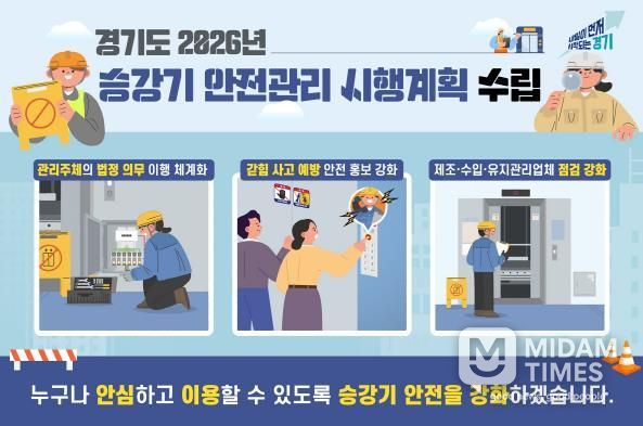 미담타임스 정주환 기자 | 경기도는 도민 안전과 승강기 이용환경 개선을 위해 ‘2026년 경기도 승강기 안전관리 시행계획’을 수립하고 안전관리 강화에 나선다고 3일 밝혔다.