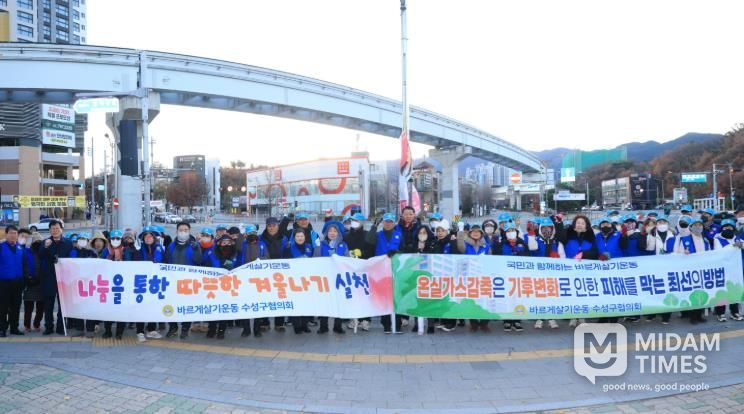 김대권 수성구청장은 “바르게살기운동 대구수성구협의회의 에너지 절약·나눔 실천 캠페인은 지역사회에 온기를 전할 뿐 아니라 기후변화 대응에 동참하는 의미 있는 활동”이라며 “구민 모두가 생활 속 작은 실천으로 친환경 수성구를 만드는 데 함께해 주셔서 감사드린다”고 전했다.