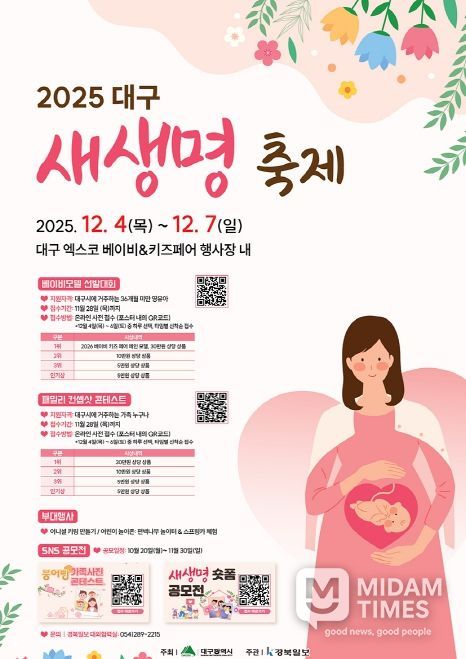 미담타임스 김교환 기자 | 대구광역시는 저출산·고령화 시대 속에서 생명의 소중함을 되새기고, 가족 친화적인 지역 문화를 확산하기 위해 12월 4일부터 7일까지 엑스코 동관에서 ‘2025년 대구 새생명 축제’를 개최한다.