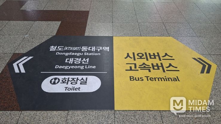 미담타임스 김교환 기자 | 대구교통공사는 최근 도시철도 동대구역 대합실 내 바닥 안내표지를 전면 개선했다.