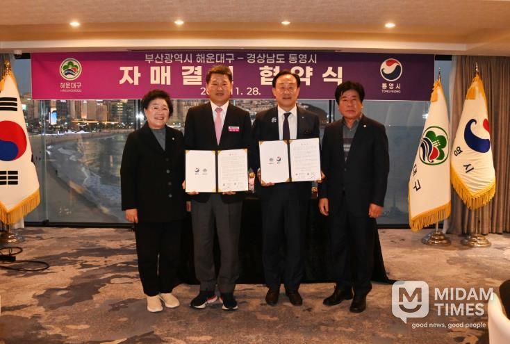 미담타임스 김교환 기자 | 해운대구는 지난 11월 28일, 해운대구에서 경상남도 통영시와 자매도시 결연 협약을 체결했다.