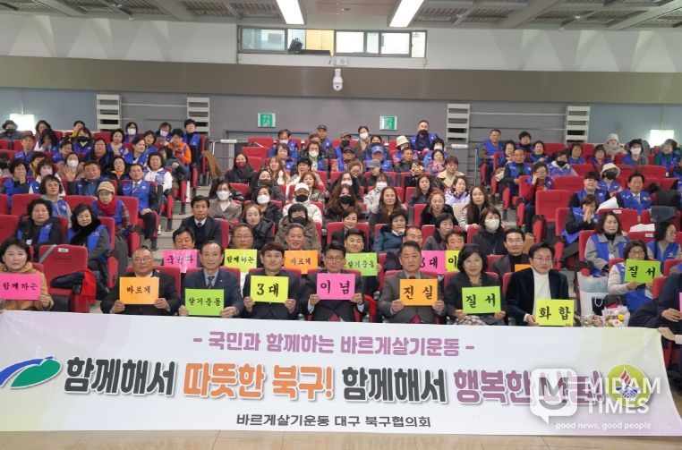 미담타임스 김교환 기자 | 대구 북구 바르게살기운동 대구북구협의회(회장 박종현)는 12월 3일 북구청소년회관에서 ‘2025년 북구 회원대회 및 탈북민·다문화가족 초청 명사특강’을 개최했다.