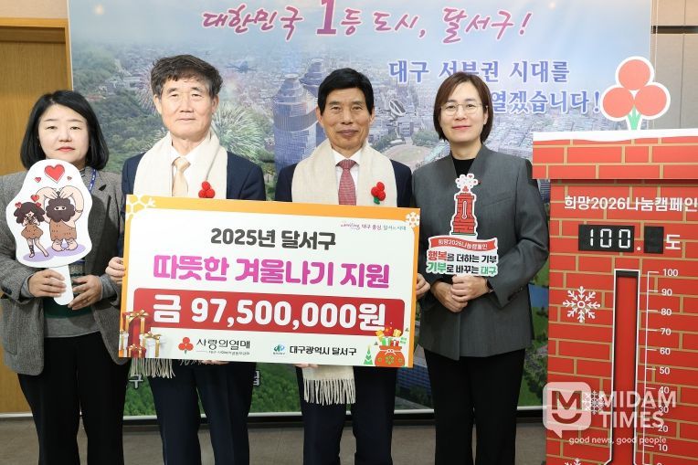 이날 행사에서는 따뜻한 겨울나기 지원사업을 위해 총 9,750만 원의 성금이 달서구에 전달됐으며, 해당 성금은 저소득 취약계층 975세대에 각 10만 원씩 지원될 예정이다.