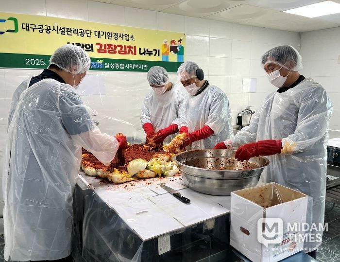 미담타임스 김교환 기자 | 대구공공시설관리공단 대기환경사업소는 2025년 12월 3일, 지역 내 취약계층의 따뜻한 겨울나기를 돕기 위해 ‘사랑의 김장김치 나누기’ 행사에 참여했다고 밝혔다.
