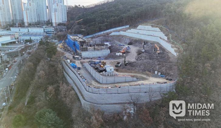 올해 2월 착공한 달서중·고 이전 신축 현장은 건물 외부 주요 옹벽공사를 완료하고, 현재 중·고등학교 건물 골조 공사에 한창이다.