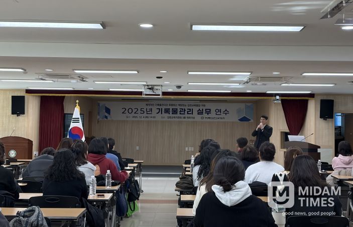 미담타임스 김준완 기자 | 김천교육지원청은 2025년 12월 4일 4층 대회의실에서 지역 내 유·초·중학교 기록물관리 업무담당자 54명을 대상으로 ‘기록물관리 실무연수’를 실시했다.