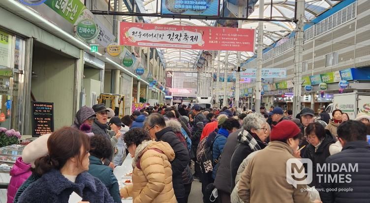 이날 오전 10시부터 지역 유치원생들의 김장 담그기 프로그램이 진행됐고, 오전 11시부터는 개막식과 함께 축하 공연, 김장 시식, 경품 추첨이 이어지며 시장 전체가 활기와 웃음으로 가득 찼다.
