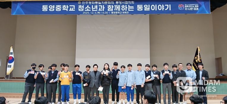 미담타임스 김교환 기자 | 민주평화통일자문회의 통영시협의회(회장 김정열)는 지난 4일 통영중학교 체육관에서 ‘청소년과 함께하는 통일이야기’ 통일교육 행사를 개최했다.