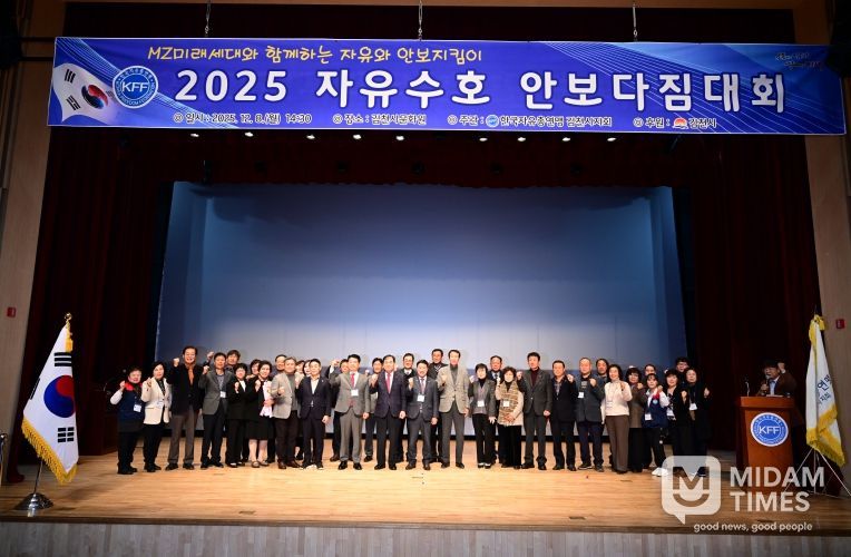 미담타임스 김준완 기자 | 한국자유총연맹 김천시지회(회장 여영각)는 지난 8일 ‘2025 안보강연회 및 안보다짐대회’를 개최해 자유민주주의 수호 의지를 다졌다.