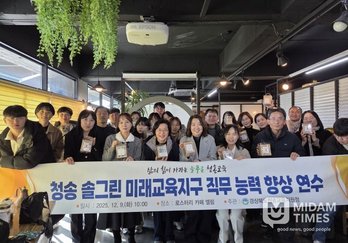 미담타임스 김준완 기자 | 경상북도청송교육지원청은 12월 9일에 2025년을 마무리하고 직원들의 화합과 소통을 위해 2026년을 준비하고자 교육지원청 및 청송도서관 직원이 함께 특수분야 직무연수 기관으로 지정된 안동시의 카페에서 바리스타 연수를 실시했다.