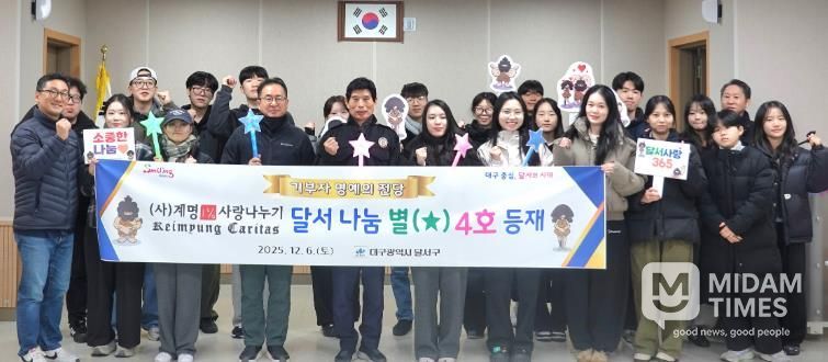 미담타임스 김교환 기자 | 대구 달서구는 10년 연속 나눔 기부를 이어온 (사)계명1%사랑나누기를 『달서 나눔 별(★) 4호』로 등재했다고 10일 밝혔다.