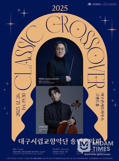 미담타임스 김교환 기자 | 연말을 장식할 대구시립교향악단의 '2025 송년음악회 : 클래식 크로스오버'가 오는 12월 26일 오후 7시 30분, 대구콘서트하우스 그랜드홀에서 열린다.