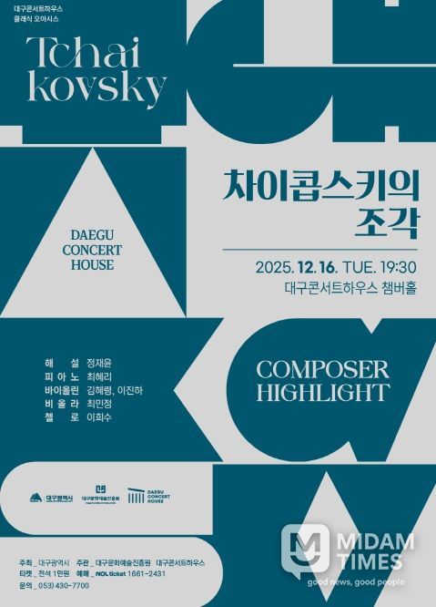 미담타임스 김교환 기자 | 대구문화예술진흥원 대구콘서트하우스는 ‘컴포저 하이라이트’ 12월 공연을 통해 러시아 낭만주의 작곡가 차이콥스키의 작품 세계를 집중 조명한다.