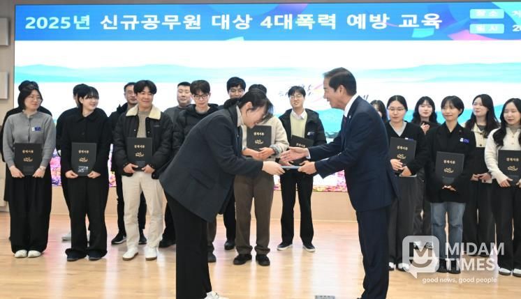 이번 교육은 지난 10월에 임용된 신규 직원의 성희롱·성폭력·성매매·가정폭력 등 ‘4대 폭력’에 대한 이해를 높이고 예방 역량을 강화하기 위해 마련됐다.