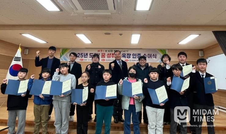 미담타임스 김준완 기자 | 경상북도울진교육지원청은 지난 12월 9일 경상북도교육청 울진도서관에서‘2025 도전! 꿈 성취 교육장 인증 수여식’을 개최하여 울진의 문화유산과 자연을 탐방하며 활동을 완주한 학생 27명에게 인증패를 수여했다.