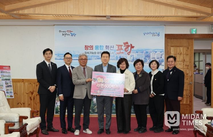 미담타임스 김준완 기자 | 포항시는 (사)한국청소년육성회 포항시지구회와 유성요양병원이 10일 포항시청을 방문해 지역아동센터 64개소로 전달할 라면 600박스를 기탁했다고 밝혔다.