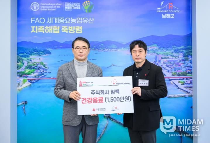 주식회사 일백은 2020년부터 올해까지 총 11회, 누적 1억 5,800만원 상당의 건강음료를 꾸준히 지원하며 남해군의 대표나눔 기업으로 자리매김하고 있다.