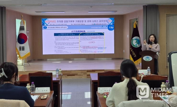 미담타임스 김준완 기자 | 경상북도청송교육지원청은 12월 10일 오후 2시 청송교육지원청 대회의실에서 공립유치원 교원 11명을 대상으로 유치원 생활기록부 기재 요령 및 유아 나이스 학년말 교무업무 추진을 위한 사용자 연수를 실시했다.
