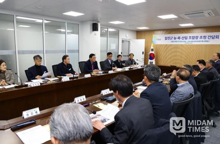 미담타임스 김교환 기자 | 12월 10일, 합천군은 농업기술센터 3층 소회의실에서 농협·축협·산림 조합장들과 합천군 농업발전을 위한 간담회를 가졌다.