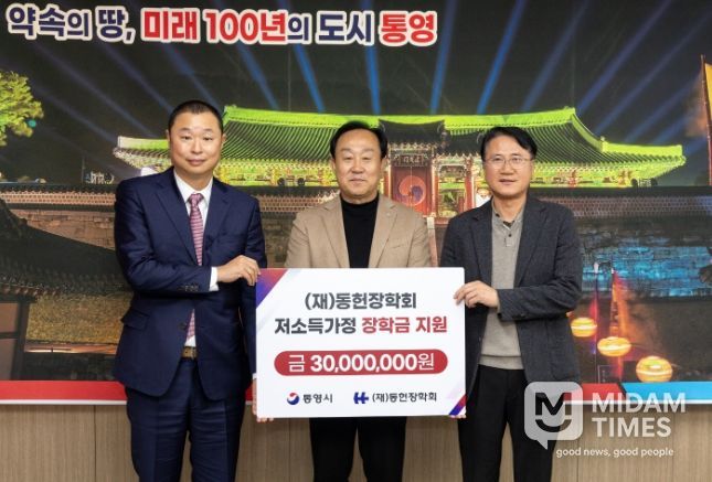 미담타임스 김교환 기자 | 재단법인 동헌장학회는 지난 9일 통영시에 저소득가정 학생의 학업 지원을 위한 장학금 3,000만원을 기탁하며 지역 인재 육성에 따뜻한 뜻을 전했다.