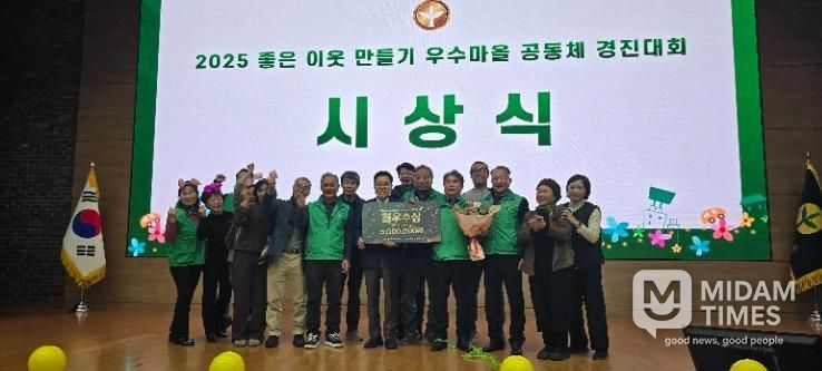 미담타임스 김교환 기자 | 밀양시 산내면 동명마을 공동체는 지난 11일 새마을운동중앙회에서 개최한 ‘2025 좋은 이웃 만들기 우수마을 공동체 경진대회’에서 국고 공모사업 부문 최우수상을 수상했다.