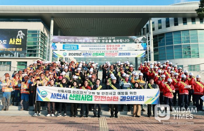 미담타임스 김교환 기자 | 사천시는 겨울철 건조한 기후와 산림사업 현장에서의 각종 안전사고 위험 요소가 증가함에 따라 '산림사업 안전실천 결의대회'를 12월 12일 시청 노을광장에서 개최했다고 밝혔다.