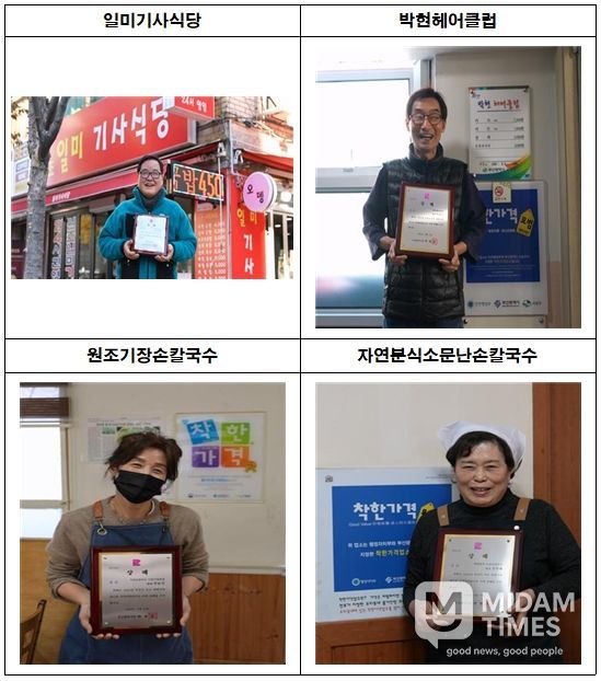 선정된 4곳은 ▲일미기사식당(대표 이순심, 중구 부평동) ▲박현헤어클럽(대표 박현문, 사상구 모라동) ▲원조기장손칼국수(대표 정윤진, 기장군 기장읍) ▲자연분식소문난손칼국수(대표 장찬례, 수영구 수영동)이다.