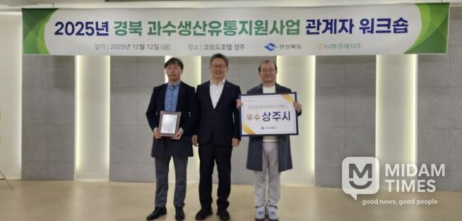 미담타임스 김준완 기자 | 상주시는 지난 12일 경상북도에서 실시한‘2025년 과수산업육성시책 평가’에서 탁월한 성과를 인정받아 우수상을 수상했다.