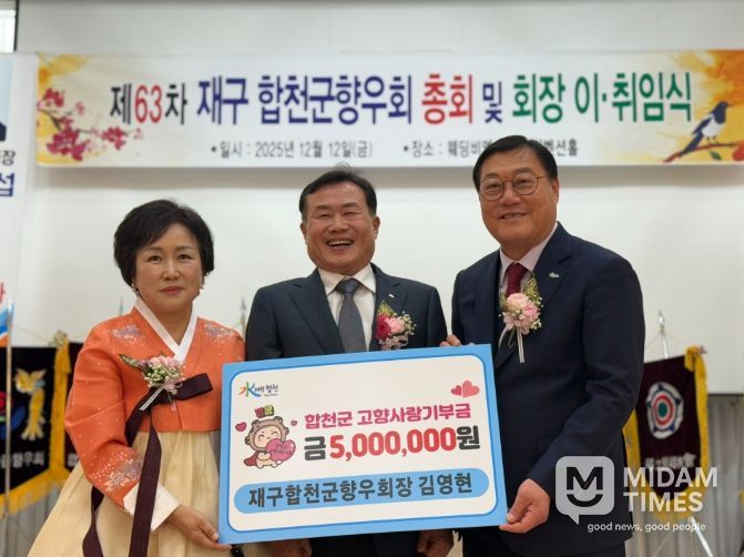 미담타임스 김교환 기자 | 합천군은 12일 대구 달서구 웨딩비엔나 컨벤션홀에서 열린 재구합천군향우회 정기총회에서 출향인들의 고향사랑기부금 기탁식이 진행됐다고 밝혔다.