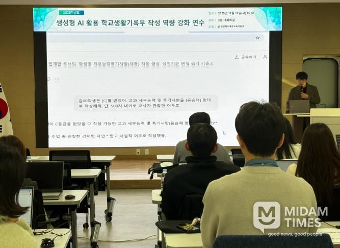 미담타임스 김준완 기자 | 경상북도예천교육지원청은 12월 12일 2층 대회의실에서 관내 중 · 고등학교 교원을 30여 명을 대상으로 생성형 AI를 활용한 학교생활기록부 작성 역량 강화 연수를 실시했다.