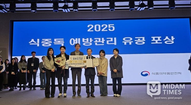 미담타임스 김준완 기자 | 경북보건환경연구원은 식품의약품안전처가 실시한 2025년 식중독 예방관리 평가에서 최우수기관으로 선정되어, 12일 경주 소노캄에서 식품의약품안전처장 표창과 포상금을 받았다.