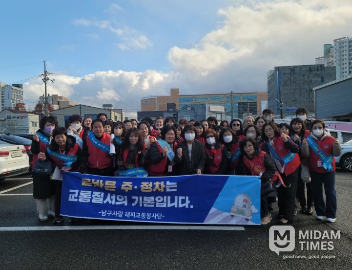 미담타임스 김준완 기자 | 남구사랑 해피교통봉사단(단장 우옥분)은 농수산물 도매시장 일원에서 회원 40여 명이 참석한 가운데 올바른 주차질서 확립을 위한 선진교통문화 조성을 위한 캠페인을 실시했다고 15일 밝혔다.