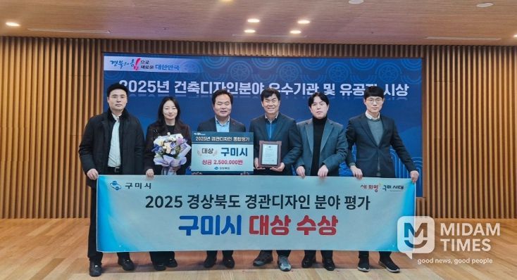 미담타임스 김준완 기자 | 구미시는 지난 16일 ‘2025 경상북도 경관디자인 분야 업무추진 평가’에서 대상을 수상했다.