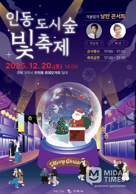 미담타임스 김준완 기자 | 구미시는 오는 12월 20일 인동로데오거리 일원에서 청춘의 에너지와 음악이 어우러지는 '2025년 인동도시숲빛축제'를 개최한다.