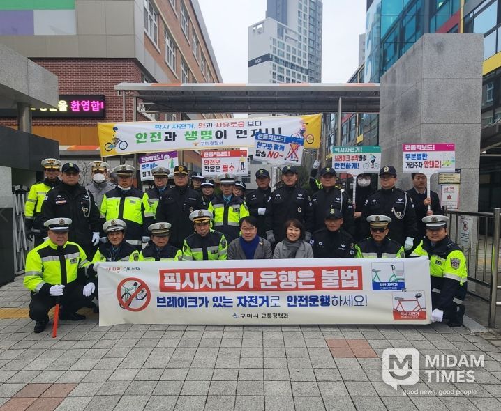 김장호 구미시장은 “픽시자전거와 전동킥보드 이용과 관련한 안전 문제가 꾸준히 제기되고 있다”며 “현장 중심의 계도 활동이 학생들의 안전한 이용 문화 정착에 도움이 되길 기대한다”고 했다.