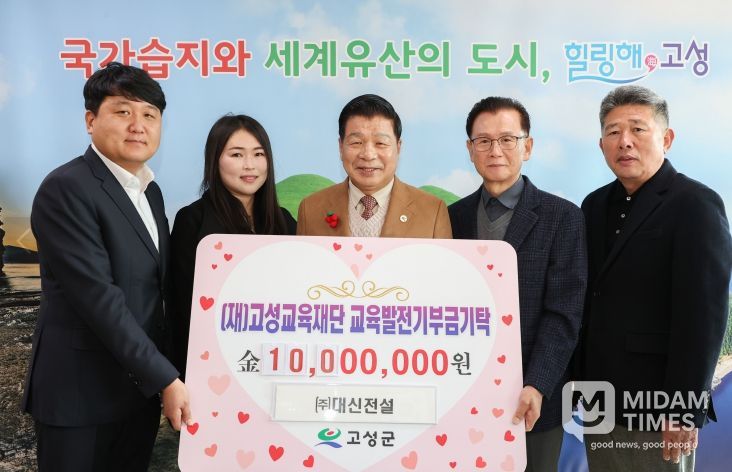 지난 16일 ㈜대신전설(대표 박성현)이 고성군 학생들의 교육환경 개선과 지역인재 양성을 위해 써달라며 교육발전기부금으로 1,000만 원을 (재)고성교육재단에 기탁했다.