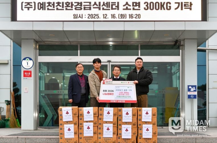 미담타임스 김준완 기자 | 영주시는 지난 16일 ㈜예천친환경급식센터(대표 신규용)가 영주시청을 방문해 소면 300kg(81만 원 상당)을 기탁했다고 밝혔다.
