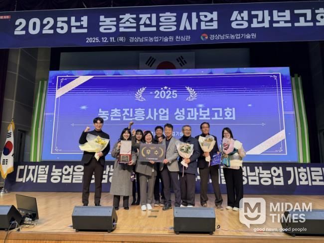 미담타임스 김교환 기자 | 산청군은 지난 11일 경남도농업기술원 미래농업교육관 및 천심관에서 열린 ‘2025년 경남4-H대상 시상식 및 농촌진흥사업 성과보고회’에서 5개 상을 받았다고 17일 밝혔다.